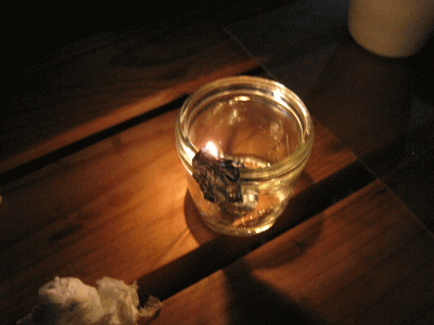 防災GOODSとして ティッシュ・ペーパー、アルミホイル、サラダ油、ジャム瓶で作る緊急ランプ