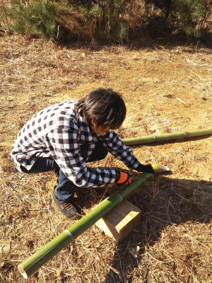 ★ 門松づくり 松の苗木も大きくなって枝打ちや間伐が必要なレベルくらいになってきている 竹は森にはびこり過ぎて困りものという状態。できたら門松をみんなで作って一石二鳥と ならないかを考えた。来年はもっと大人数で企画しよう。 この鋭角に切るのが難しい 定例会報告書 緑の環HPトップへ