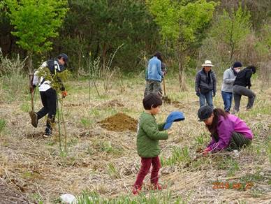 5月のグリーンウエイブのため苗木の位置決めを行い穴も掘りました。